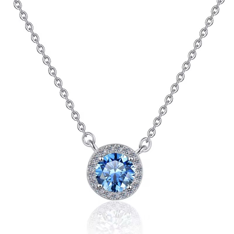 قلادة فاخرة مصنوعة من فضة 925 عالية الجودة، مرصعة بحجر الموزانايت اللامع المعروف ببريقه الأخّاذ وتألّقه الذي يدوم لسنوات.