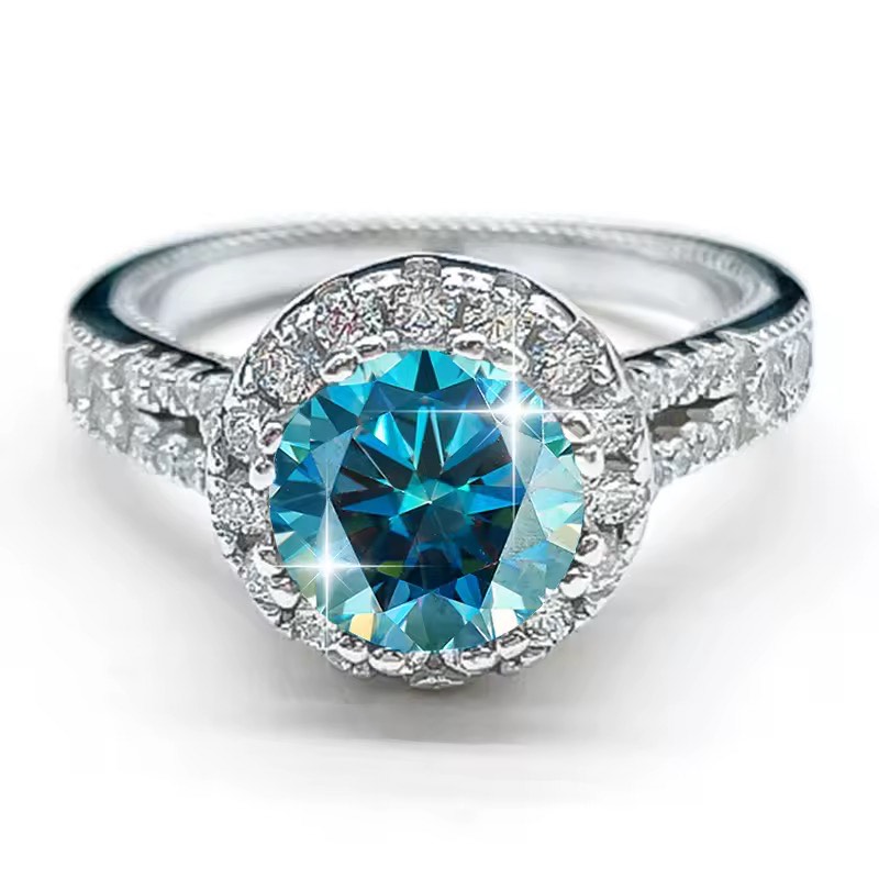 خاتم فاخر مرصّع بحجر موزانايت تركواز بوزن 2 قيراط، بتصميم لامع يجمع بين الأناقة والفخامة. يمنحك إطلالة مميزة ولمعانًا استثنائيًا ينافس الماس. قطعة مثالية للهدايا والمناسبات الخاصة.